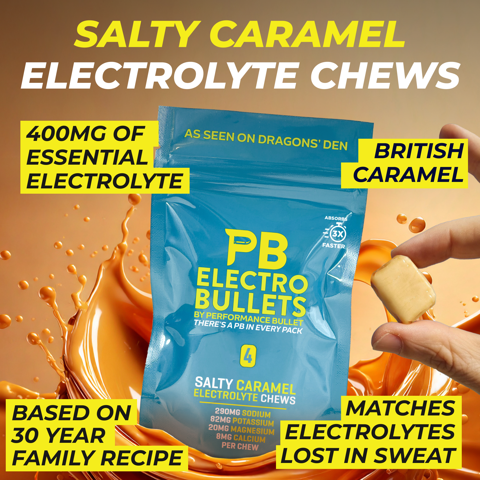 Rapid rehydration with Electro Bullet. If you love salted caramel, you’ll adore our Salty Caramel Electro Bullets. Based on a 30 year old family recipe, they deliver the rich, buttery caramel flavour perfectly balanced with a touch of sea salt. Packed full of essential 400mg of essential electrolytes and perfectly balanced between savoury and slightly sweet, with a creamy, melt-in-your-mouth texture that’s downright irresistible - hydration never tasted so good!